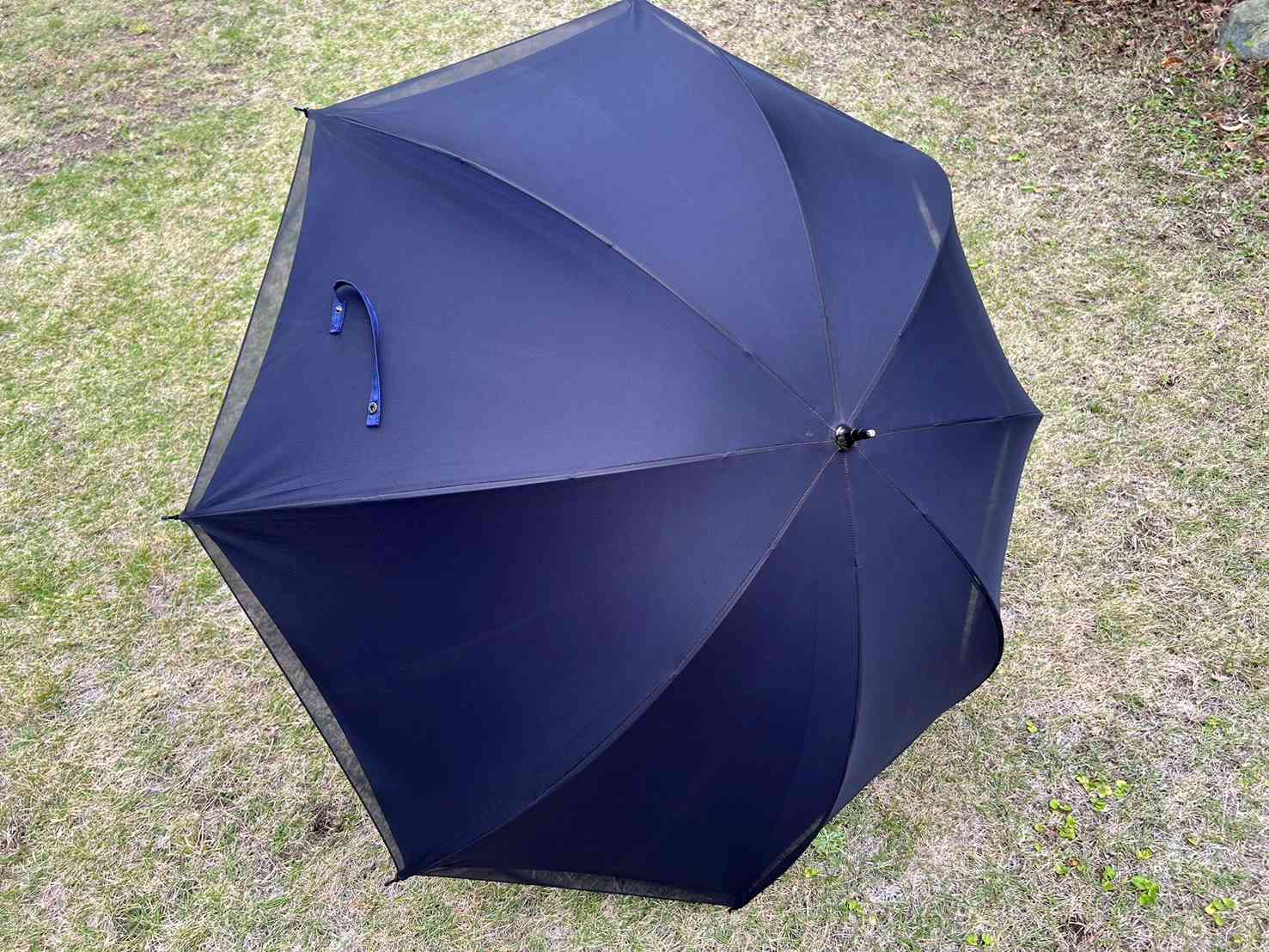 一見何の変哲もない傘ですが…よく見ると普通の傘の生地の上に、もう1枚、メッシュ素材のような生地が、すき間を開けて重なっています。
